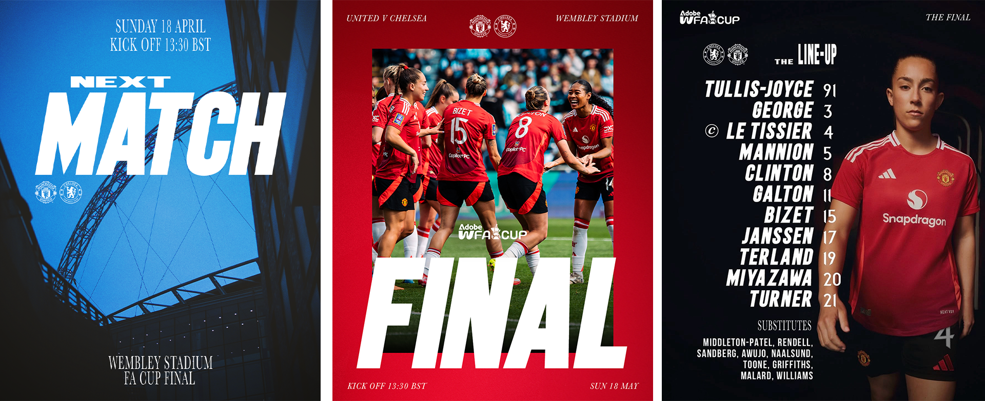 I lead the Women’s FA Cup 2025 Final campaign at Wembley, creating digital and print assets as well as stadium branding for Wembley.