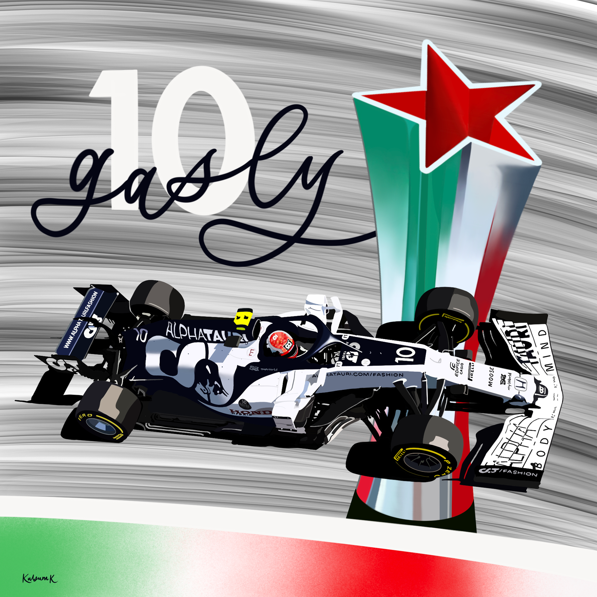 An illustration drawn after Pierre Gasly's first F1 win in Monza. Illustrated using my Apple Pencil on the app Procreate.